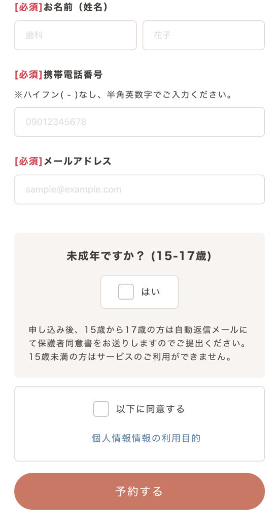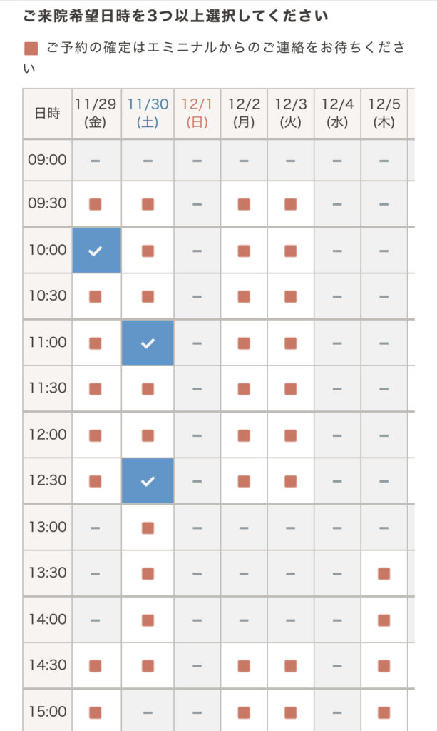 エミニナル矯正では、とても簡単に予約できる仕様になっています!